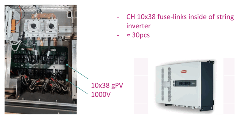 The main purpose of the protection on a.c. side is the protection of cables and installations between PV smart string inverter and the transformer station. Fuse-links have to be designed for uninterruptible operation in case of short-time overloads which could become a consequence of higher temperatures and the peak of power generation.